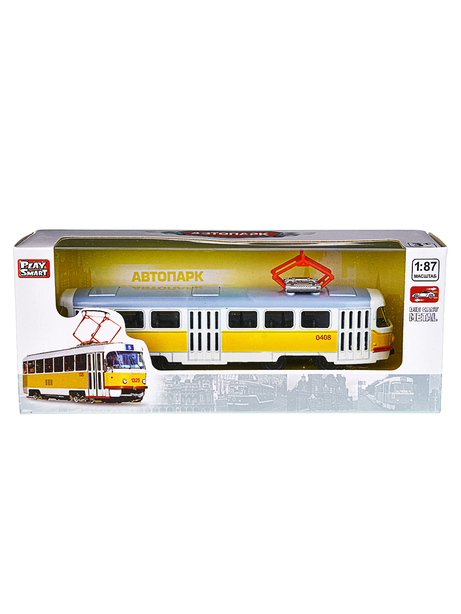 Детская инерционная металлическая машинка PlaySmart, модель Трамвай