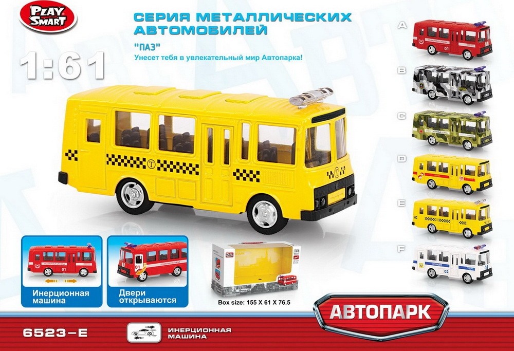 Детская инерционная металлическая машинка PlaySmart, модель Автобус ПАЗ "Такси"