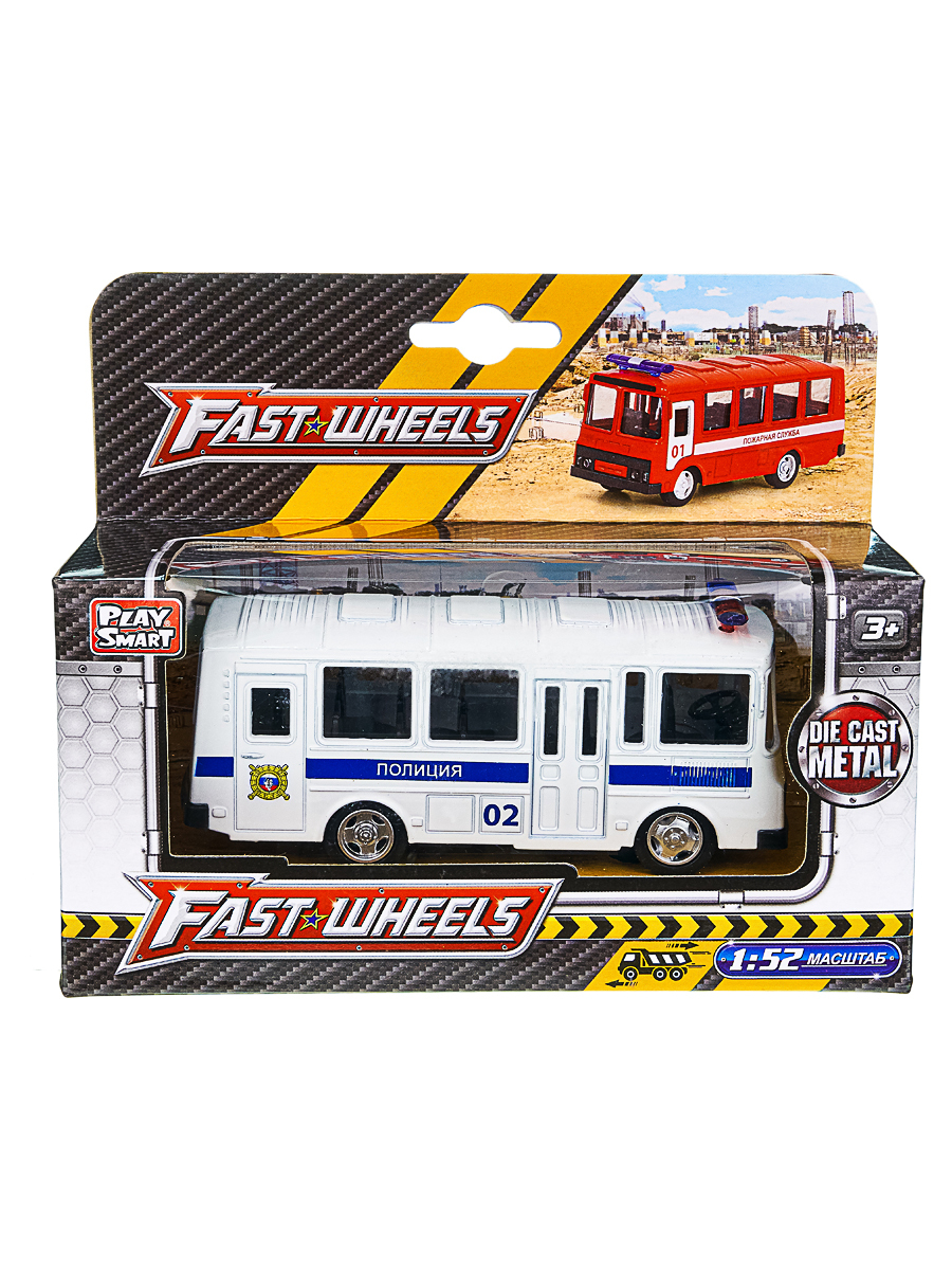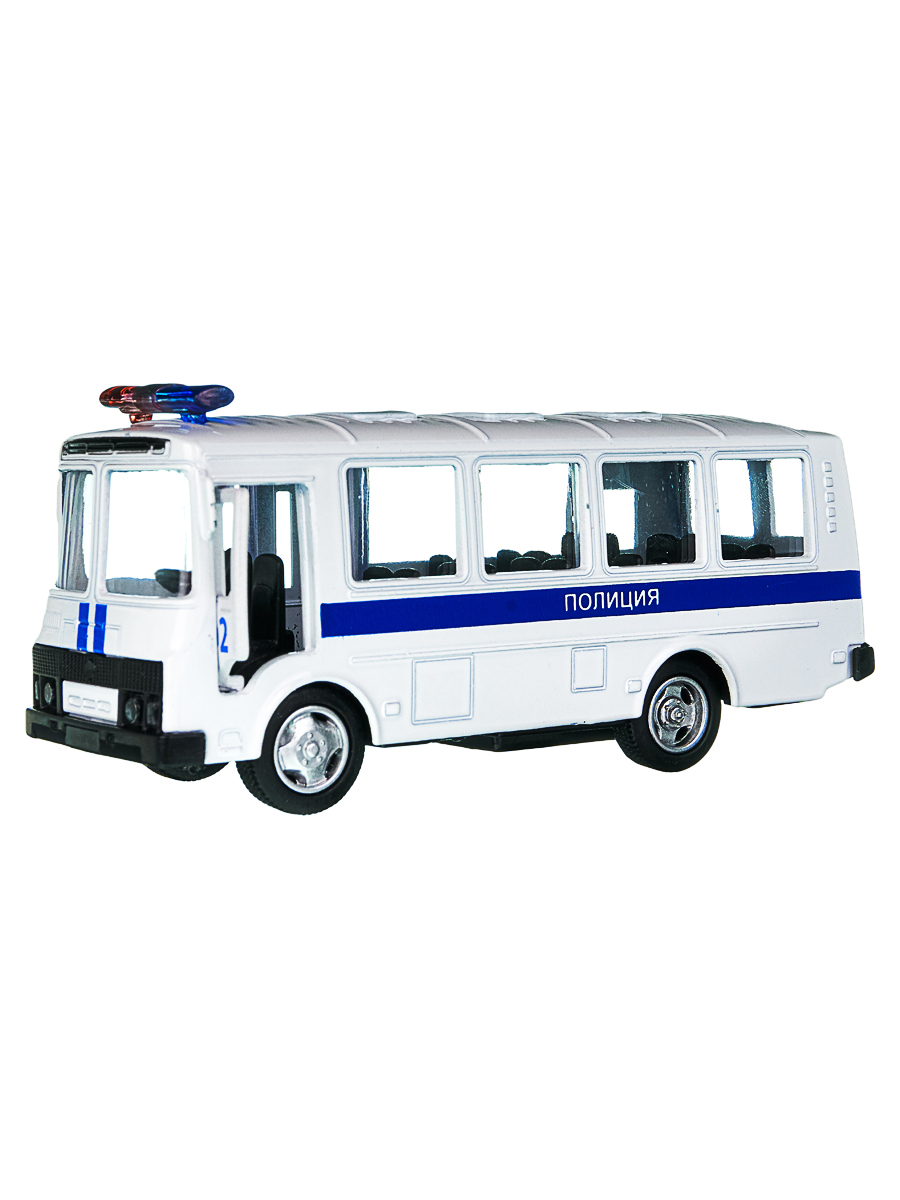 Детская инерционная металлическая машинка PlaySmart, модель Автобус ПАЗ "Полиция"