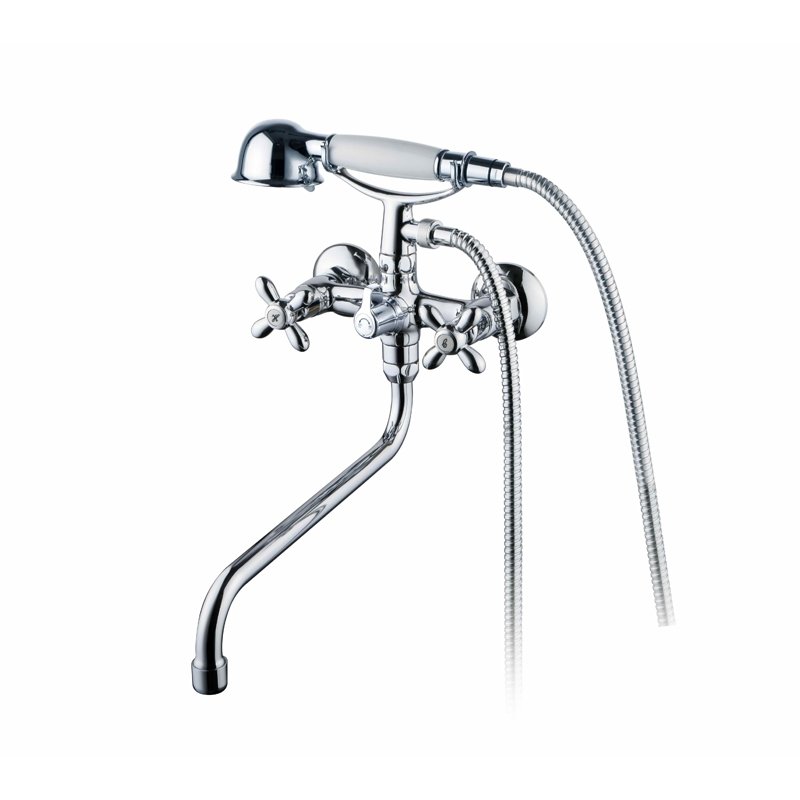 - В комплекте душевой шланг, держатель, ручной душ, смеситель