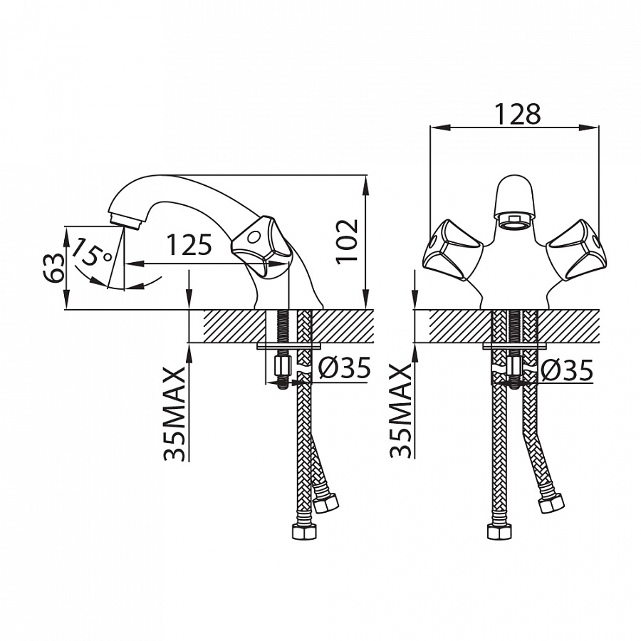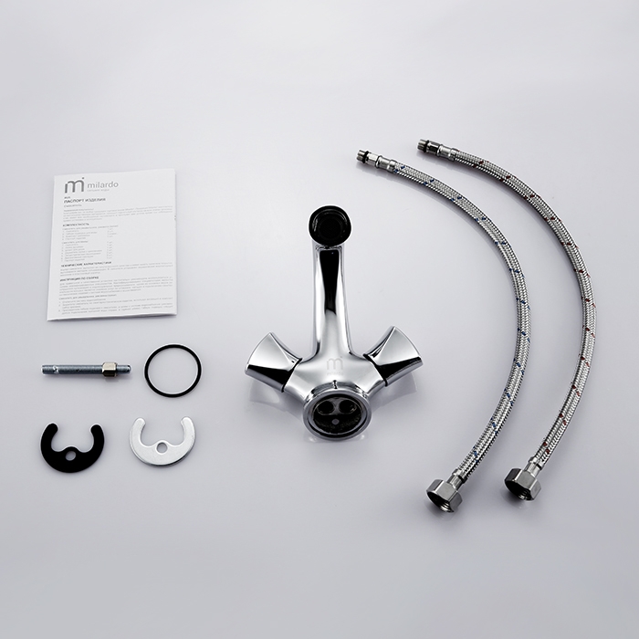 • В комплекте смеситель, гибкая подводка, керамические кран-буксы
