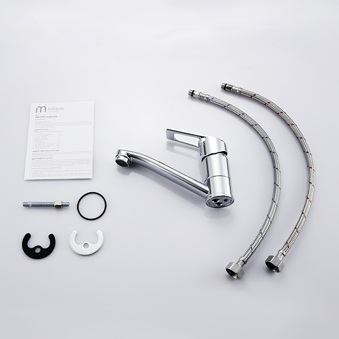 • В комплекте гибкая подводка, керамический картридж, аэратор, смеситель