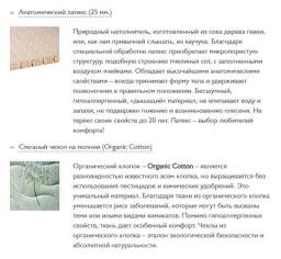 - Материалы матраса Латекс ARTILAT, Бельгия (40 мм.); Латексированная кокосовая койра (35 мм.); Анатомический латекс (25 мм.);