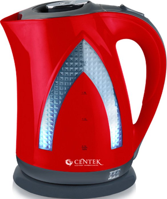 Электрический чайник, мощность 2200 Вт, объем 2 л, материал корпуса пластик, нагревательный элемент закрытая спираль, дополнительные функции: индикация включения, подставка с вращением на 360°.