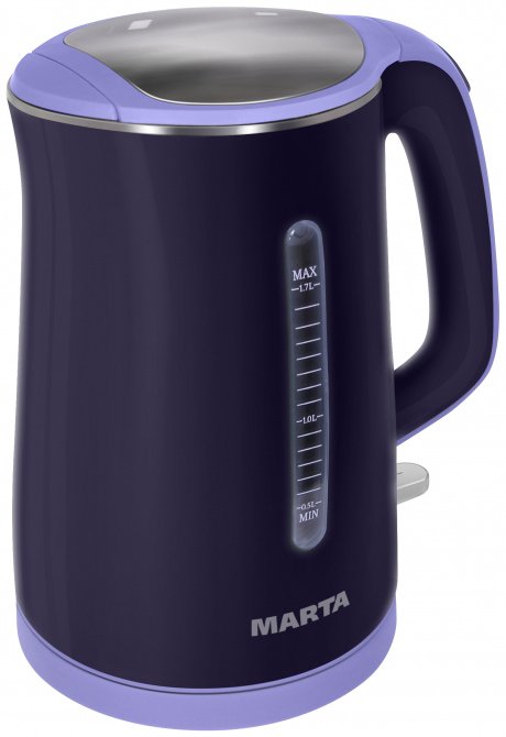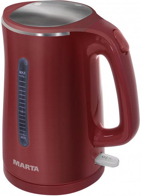 Электрический чайник, мощность 1700 Вт, объем 1.7 л, материал корпуса металл/пластик, нагревательный элемент закрытая спираль, дополнительные функции: индикация включения, подставка с вращением на 360°.