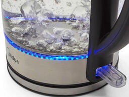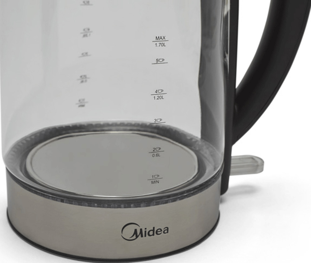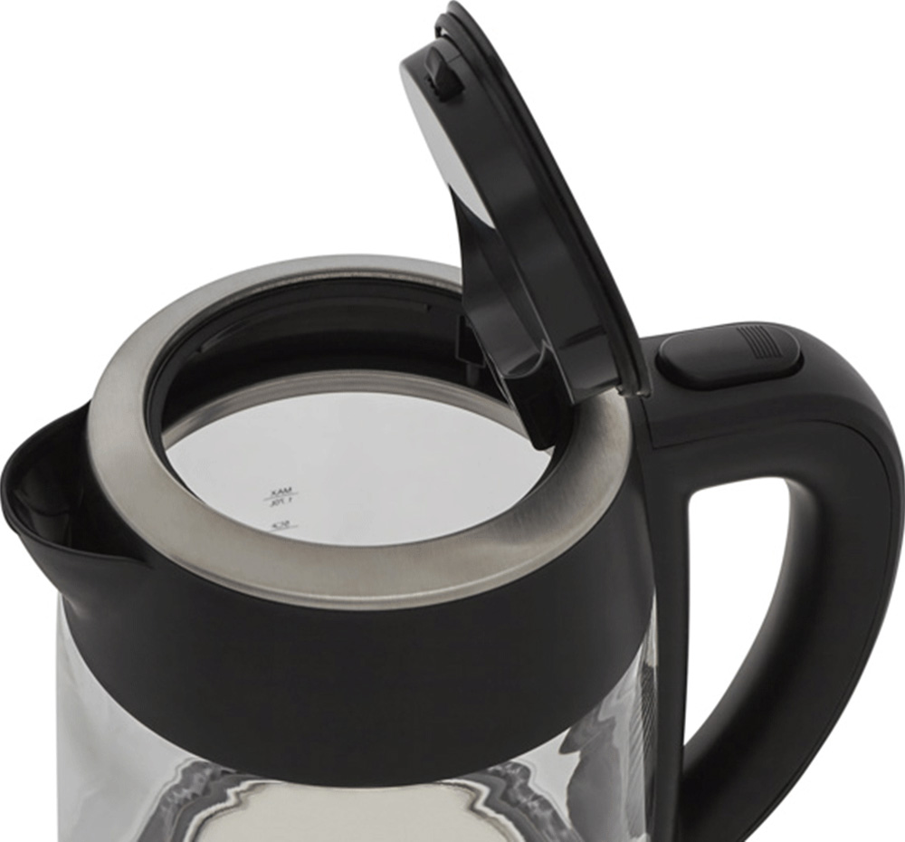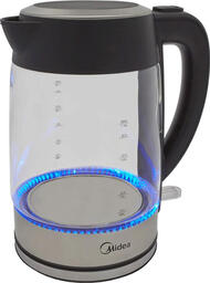 Электрический чайник, мощность 2200 Вт, объем 1.7 л, материал корпуса металл/стекло, нагревательный элемент закрытая спираль, дополнительные функции: подсветка воды, индикация включения, подставка с вращением на 360°.