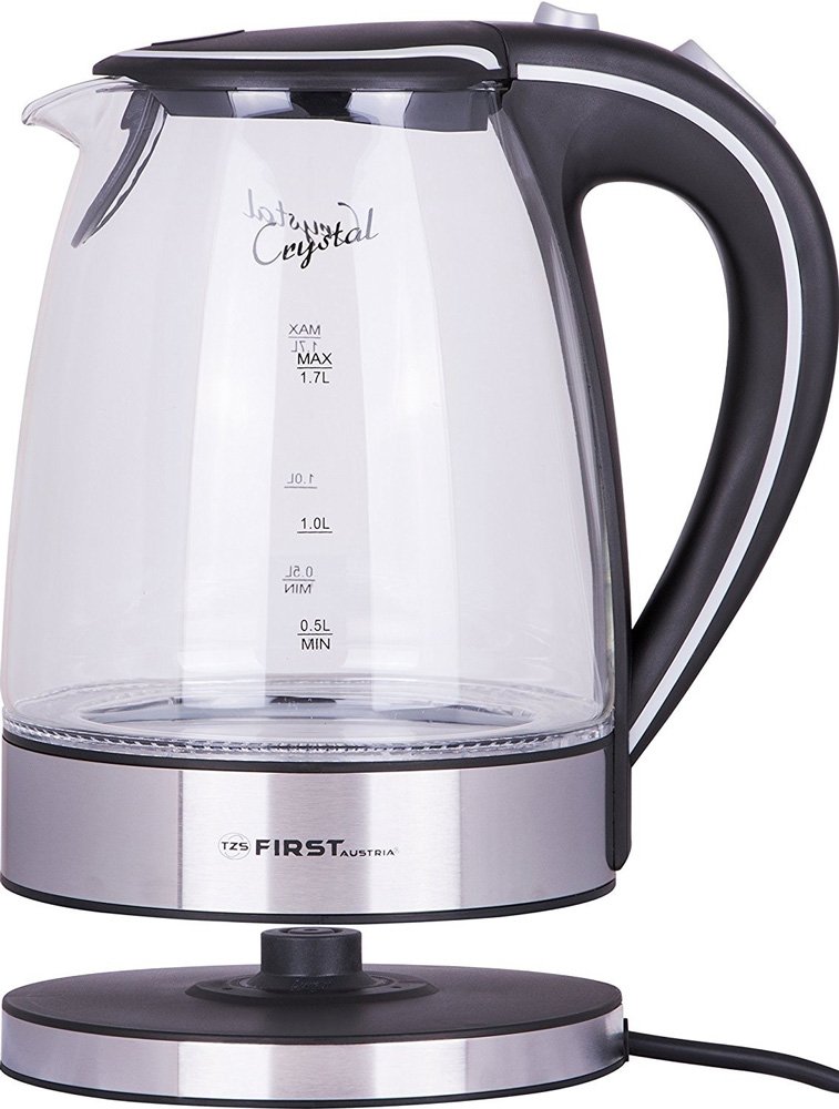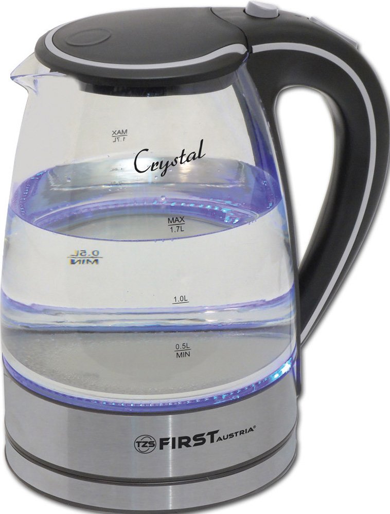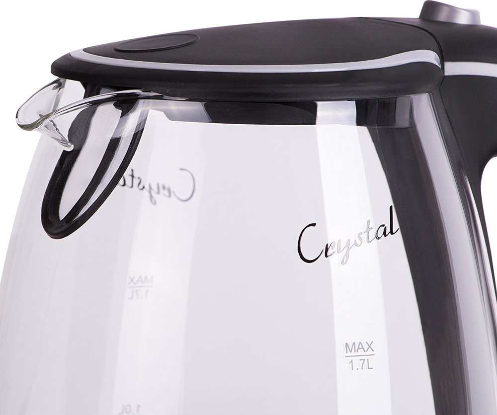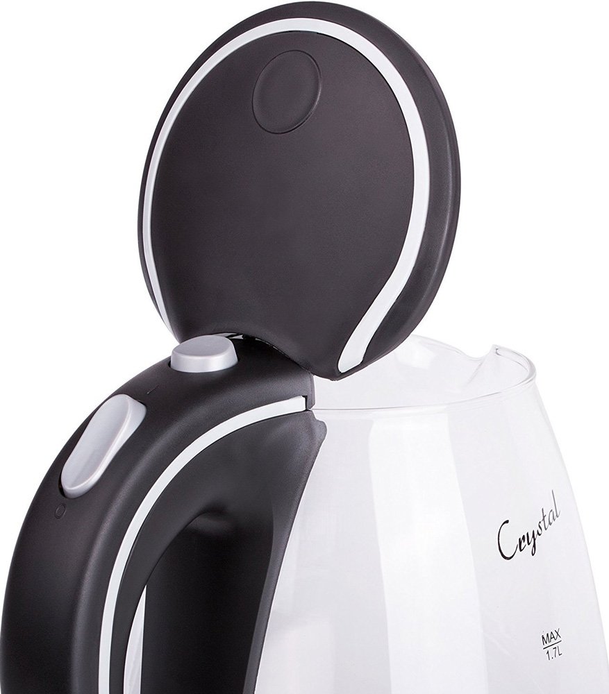 Электрический чайник, мощность 2200 Вт, объем 1.7 л, материал корпуса пластик/стекло, нагревательный элемент закрытая спираль, дополнительные функции: индикация включения, подставка с вращением на 360°.