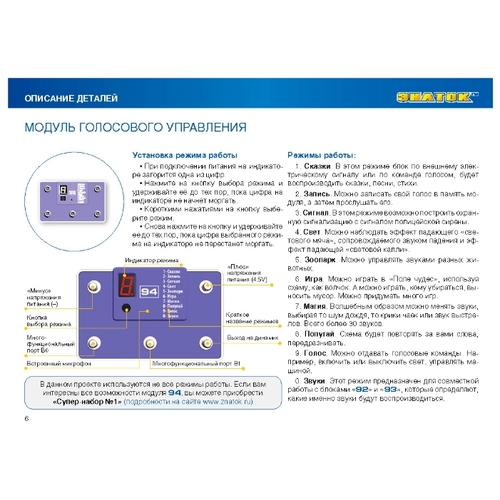 • Развиваемые навыки логика и мышление, робототехника, схемотехника и электроника, интерес к наукам, инженерия и проектирование, моторика и ловкость