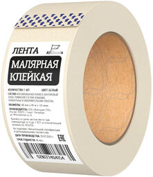 Клейкая малярная лента Maksi, крепп, (малярный бумажный скотч), 48 мм., 40 м односторонняя, прочная, для фиксации и крепления