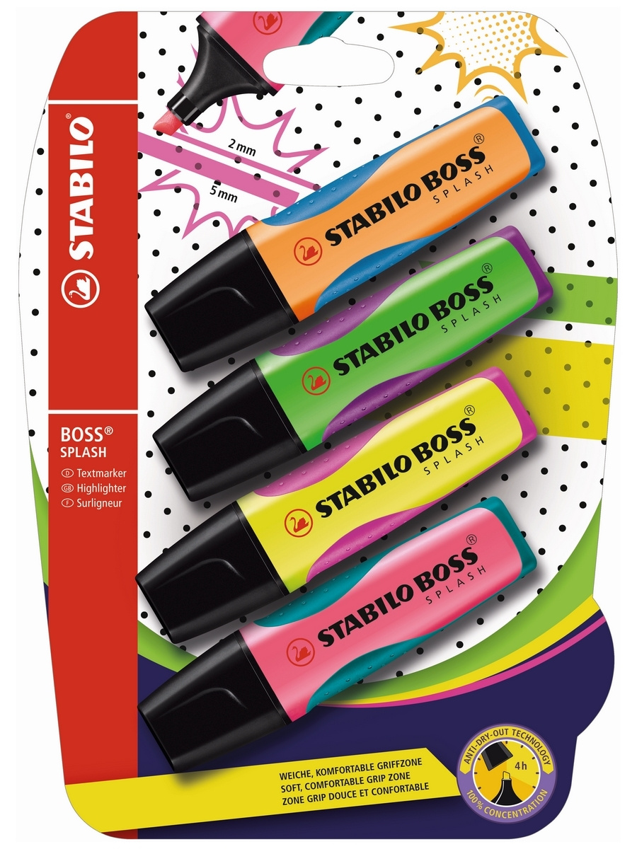 Маркер-текстовыделитель STABILO BOSS SPLASH, 4 цвета в наборе