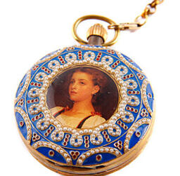 Механические карманные часы "Портреты". Латунь, роспись, эмаль, механический завод. Конец XX века
