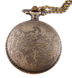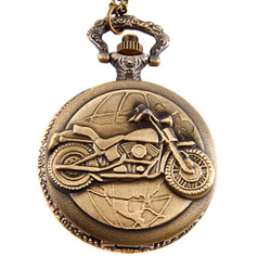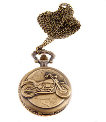 Винтажные часы "Мотоцикл" на цепочке. Металл, гравировка, кварцевый часовой механизм. Конец XX века