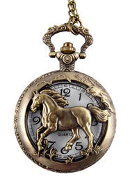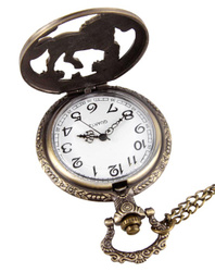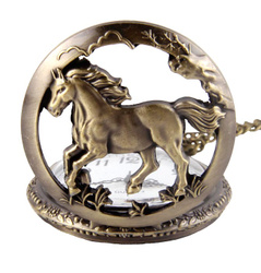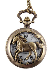 Часы карманные "Лошадь" из серии "Гороскоп" (на цепочке). Металл, стекло, гравировка, кварцевый часовой механизм. Конец XX века