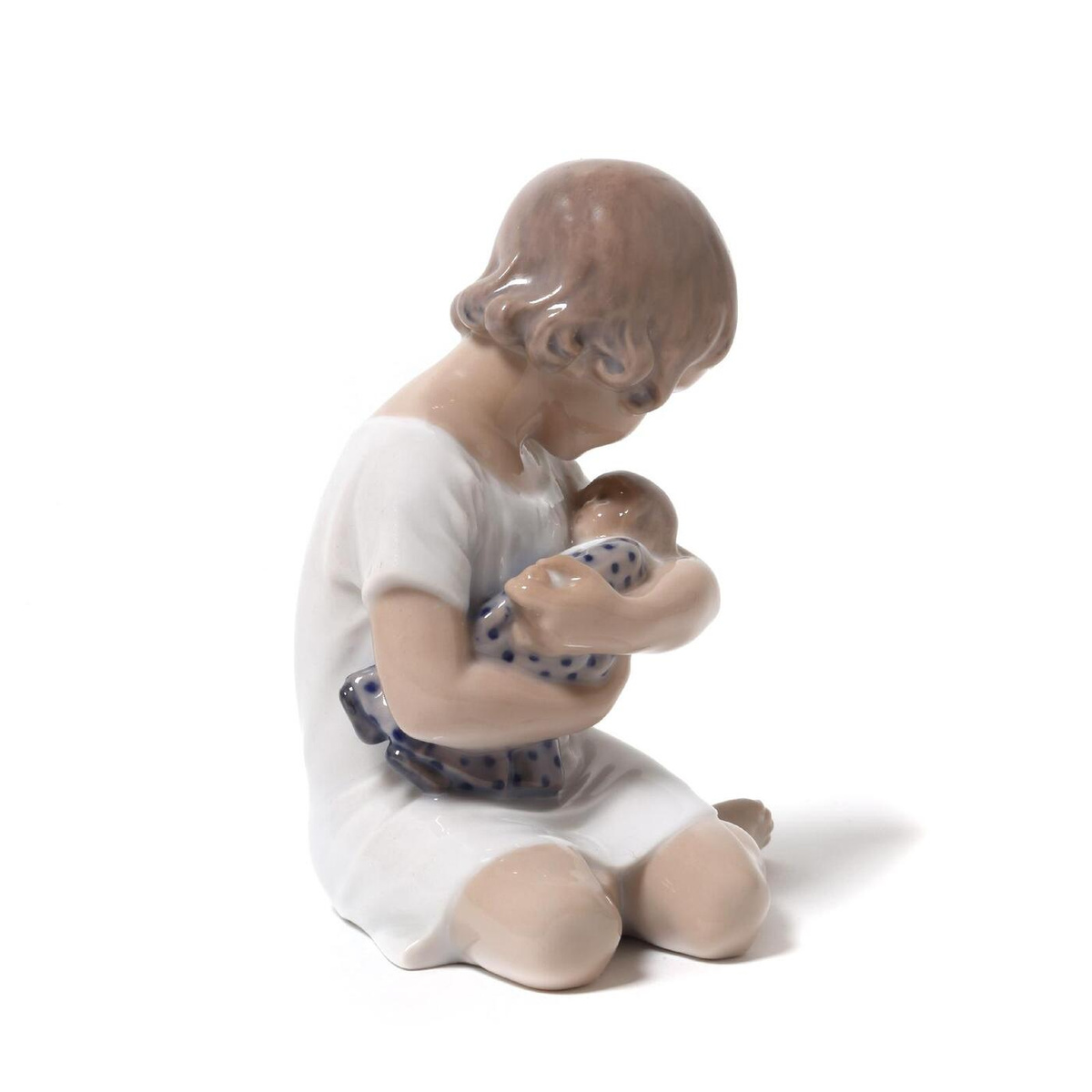 Фарфоровая фигура "Сияющая девочка с куклой в руке" Дания, г. Копенгаген, Royal Copenhagen