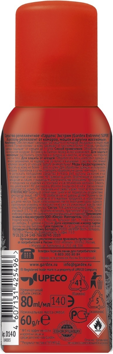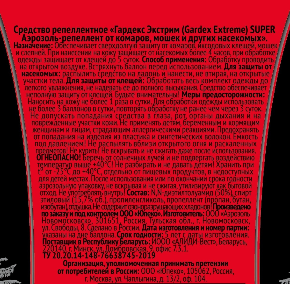 Аэрозоль-репеллент Gardex "Extreme Super", от комаров и других насекомых, 80 мл