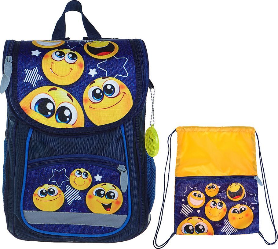 Школьный ранец Стандарт Сalligrata Первоклашка Смайлик, с мешком, 2999961, синий, 36 х 26 х 16 см