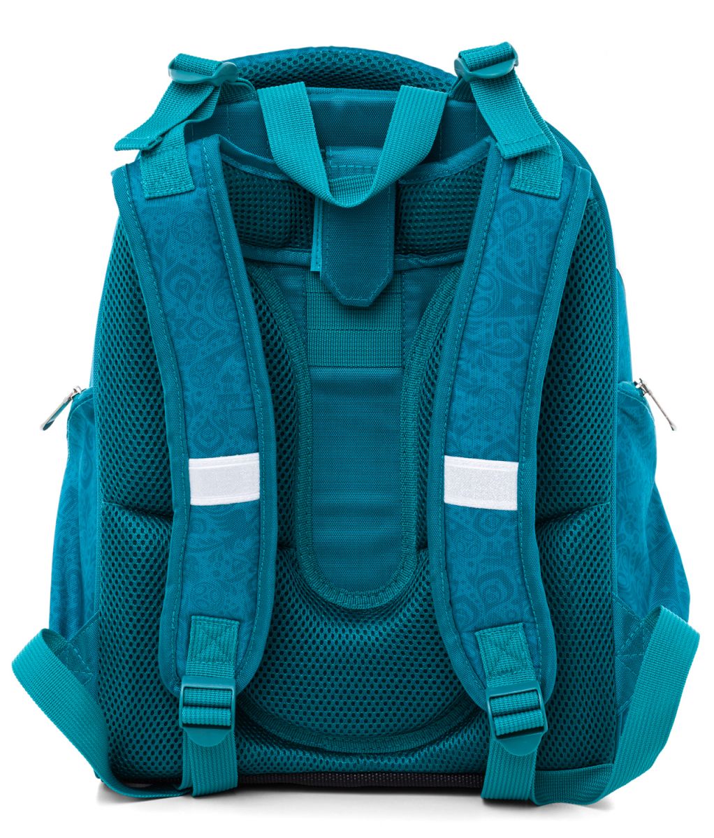 - Особенности Анатомические лямки, Воздухопроницаемая спинка, Светоотражающие вставки, Ортопедическая спинка