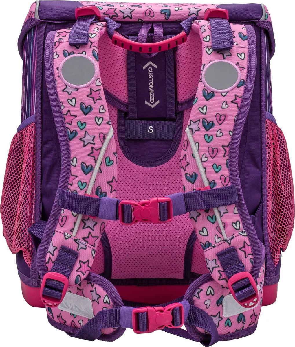 - Особенности: Ортопедическая спинка, Светоотражающие вставки, Анатомические лямки, Воздухопроницаемая спинка, Петля для подвешивания ранца, Широкие лямки, Эргономичная ручка для переноски