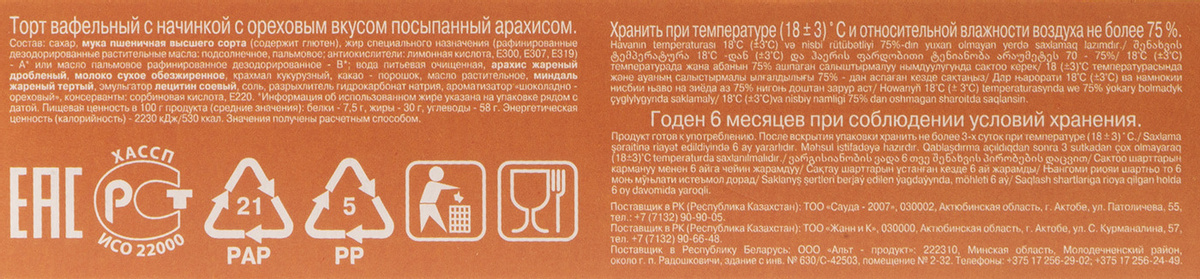 - Вид торта Вафельный