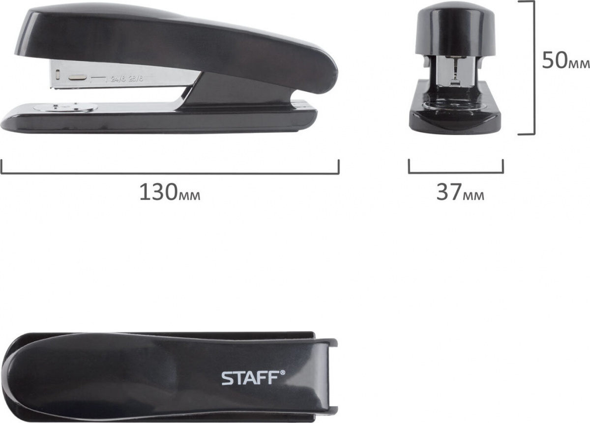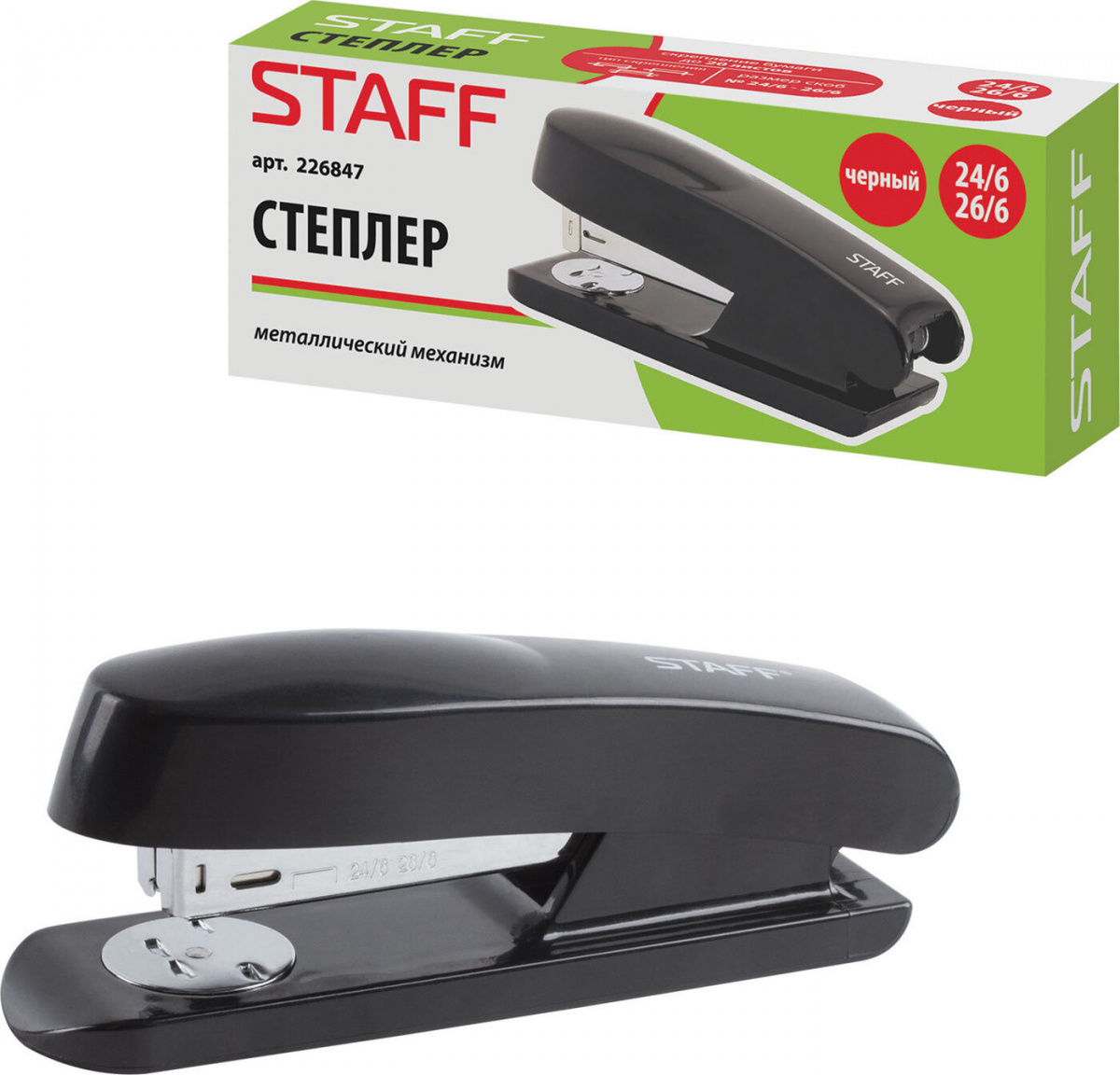 Степлер №24/6, 26/6 STAFF, до 20 листов, черный, 226847