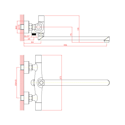 Смеситель для ванны Orange Lotos универсальный двухвентильный