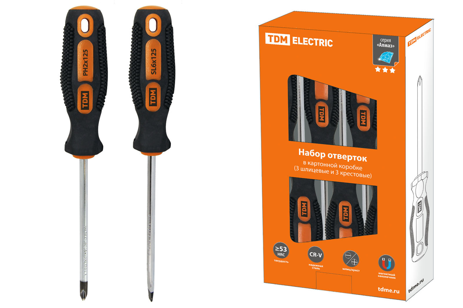 Набор отверток 6 шт.: SL:3х75;5х100;6х100, PH:0х75;1х100;2х100 (карт. коробка),CR-V "Алмаз"