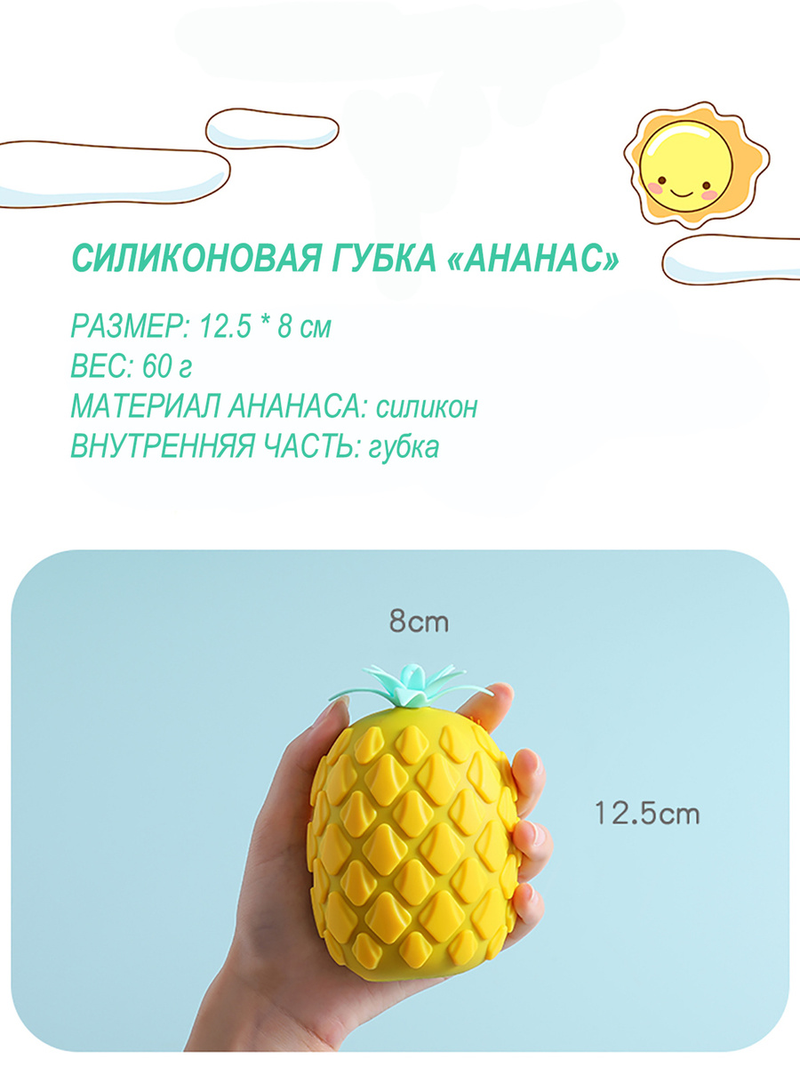 Силиконовая мочалка для взрослых и детей "Ананас", бирюзовый