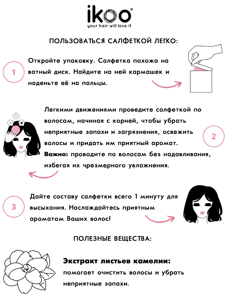 ikoo Салфетки парфюмированные для устранения неприятного запаха с волос 8 шт