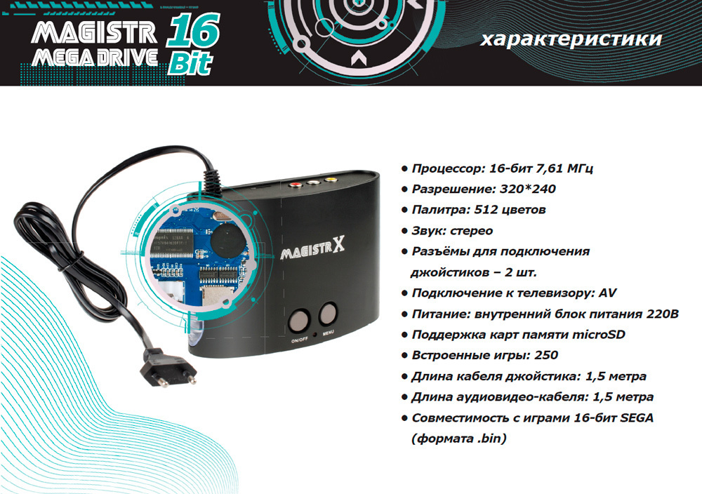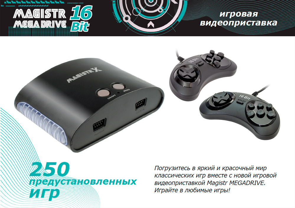 Игровая приставка Magistr Mega Drive 16Bit 250 игр