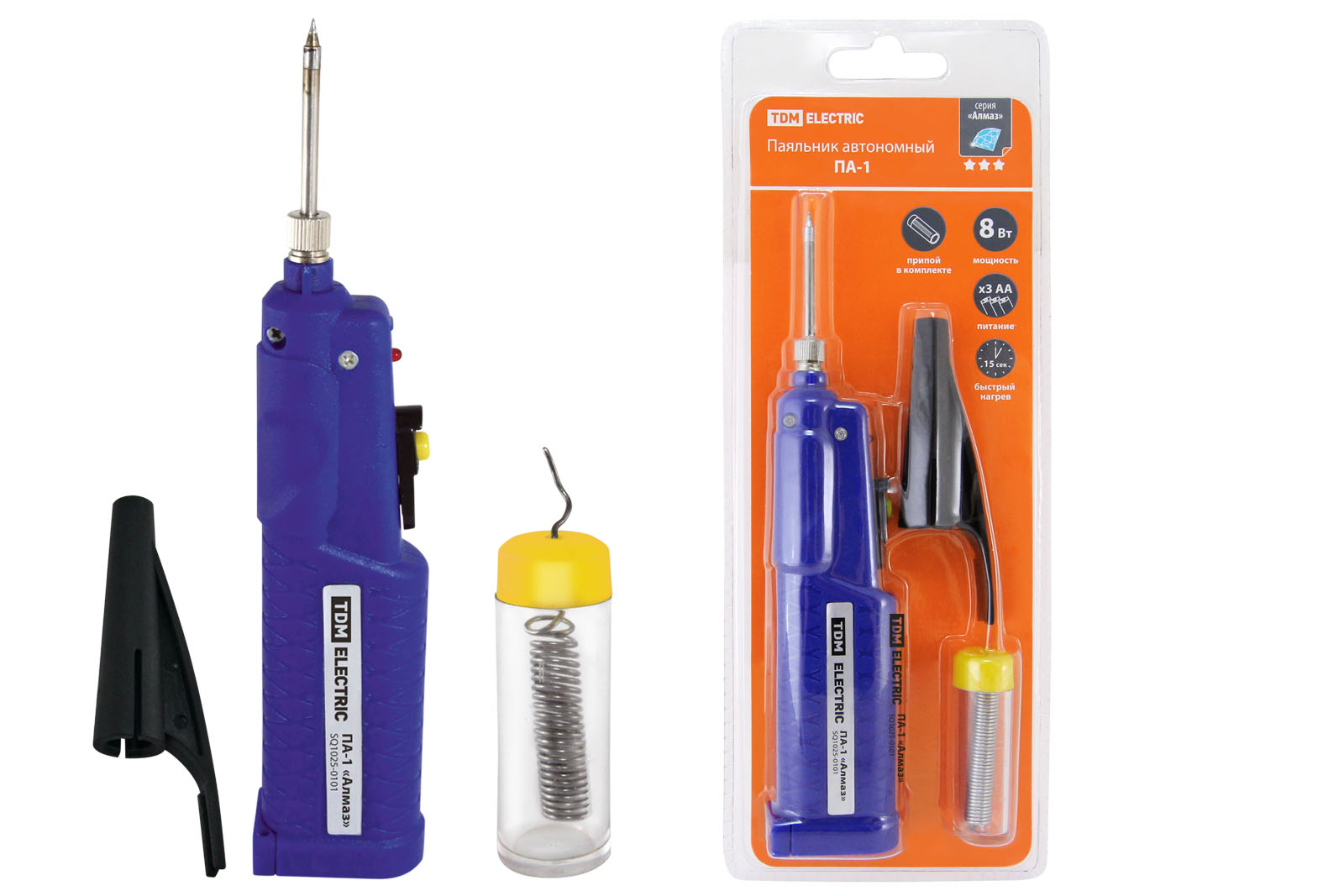 Паяльник автономный ПА-1, батареи типа 3хАА , с припоем "Алмаз"