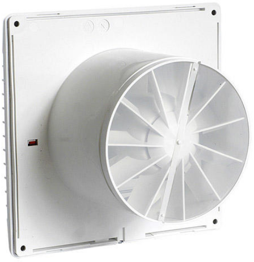 Осевой, вытяжной вентилятор, настенный, потолочный, 20 Вт, диаметр воздуходува 12 см, производительность 185 куб.м/ч, кнопка/Выключатель света, таймер/задержка отключения, обратный клапан.
