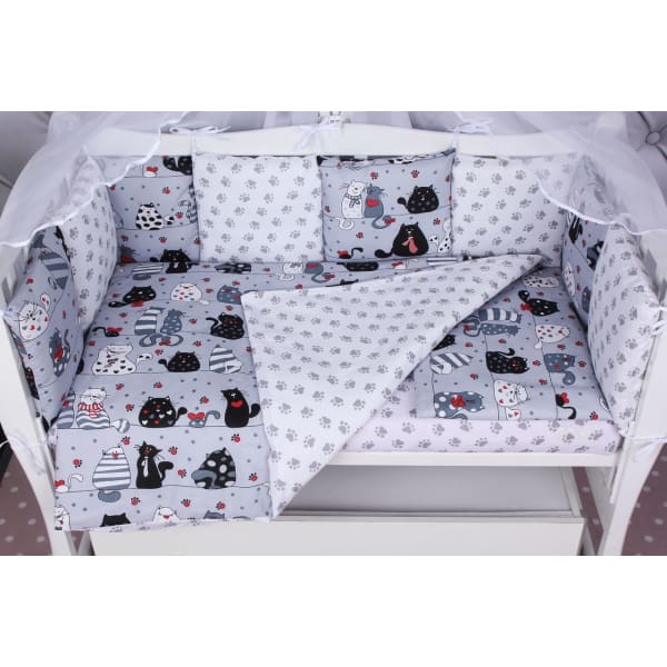 Комплект постельного белья AmaroBaby Котики в кроватку, бязь 15 предметов