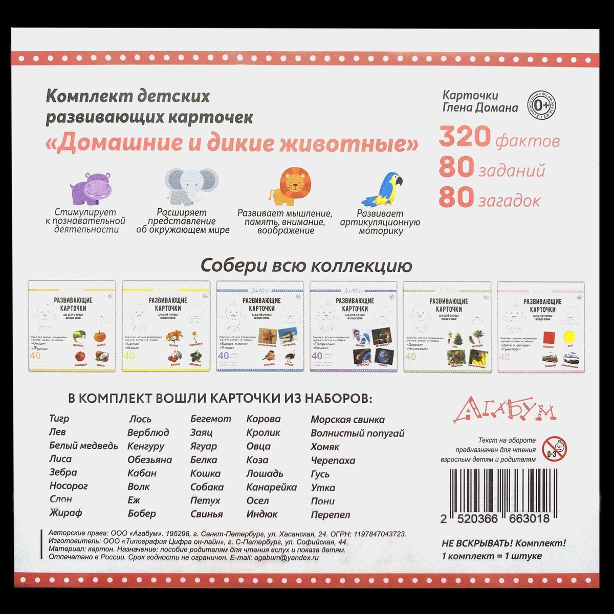 Обучающая игра АгаБум Карточки Домана Домашние и дикие животные, 2520366663018, 40 карточек