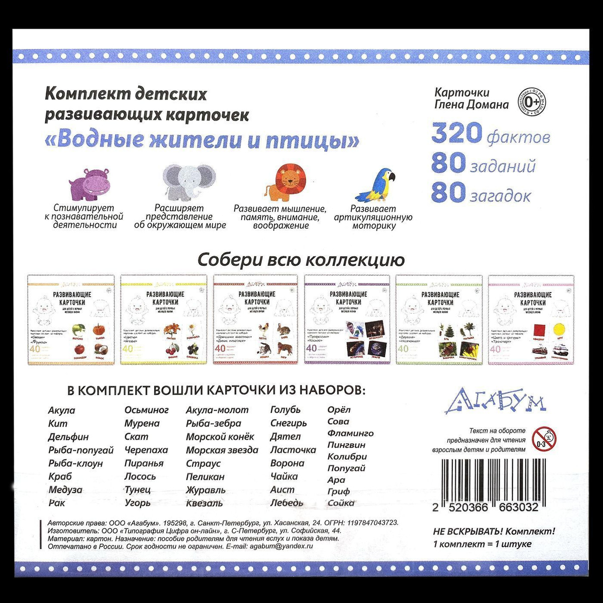 Обучающая игра АгаБум Карточки Домана Водные жители и птицы, 2520366663032, 40 карточек