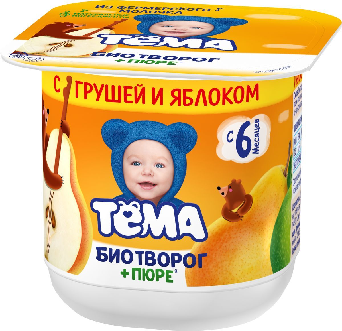 - Состав биотворог, фруктовый наполнитель (пюре груши и яблока концентрированное, пюре груши, сахарный сироп, загуститель - пектины).