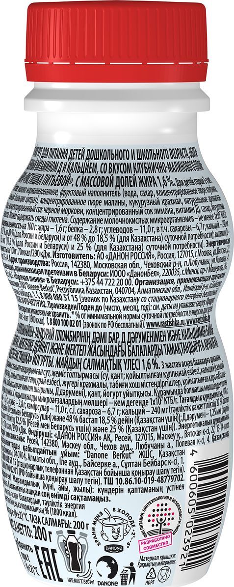 - Состав: молоко нормализованное, фруктовый наполнитель (сахарный сироп; пюре черники, кальций (кальция цитрат), кукурузный крахмал, натуральные ароматизаторы, концентрированные соки черной моркови и лимона, витамин Д), сахар, йогуртная закваска. Жира 1,6г, Белка 2,8г, углеводов 11г, в т.ч. сахарозы 6,8г, кальций 240 мг, витамин Д 1,25 мкг