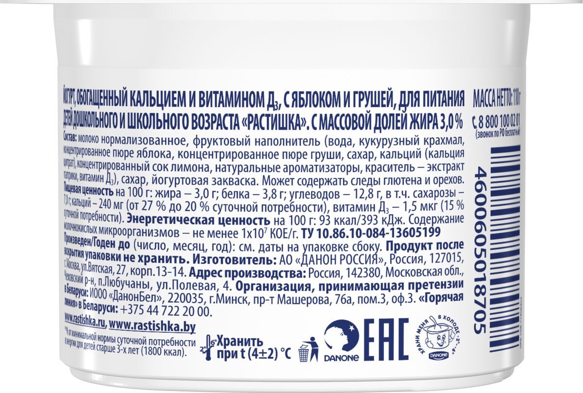 Йогурт Растишка "Яблоко-груша", 3%, 110 г