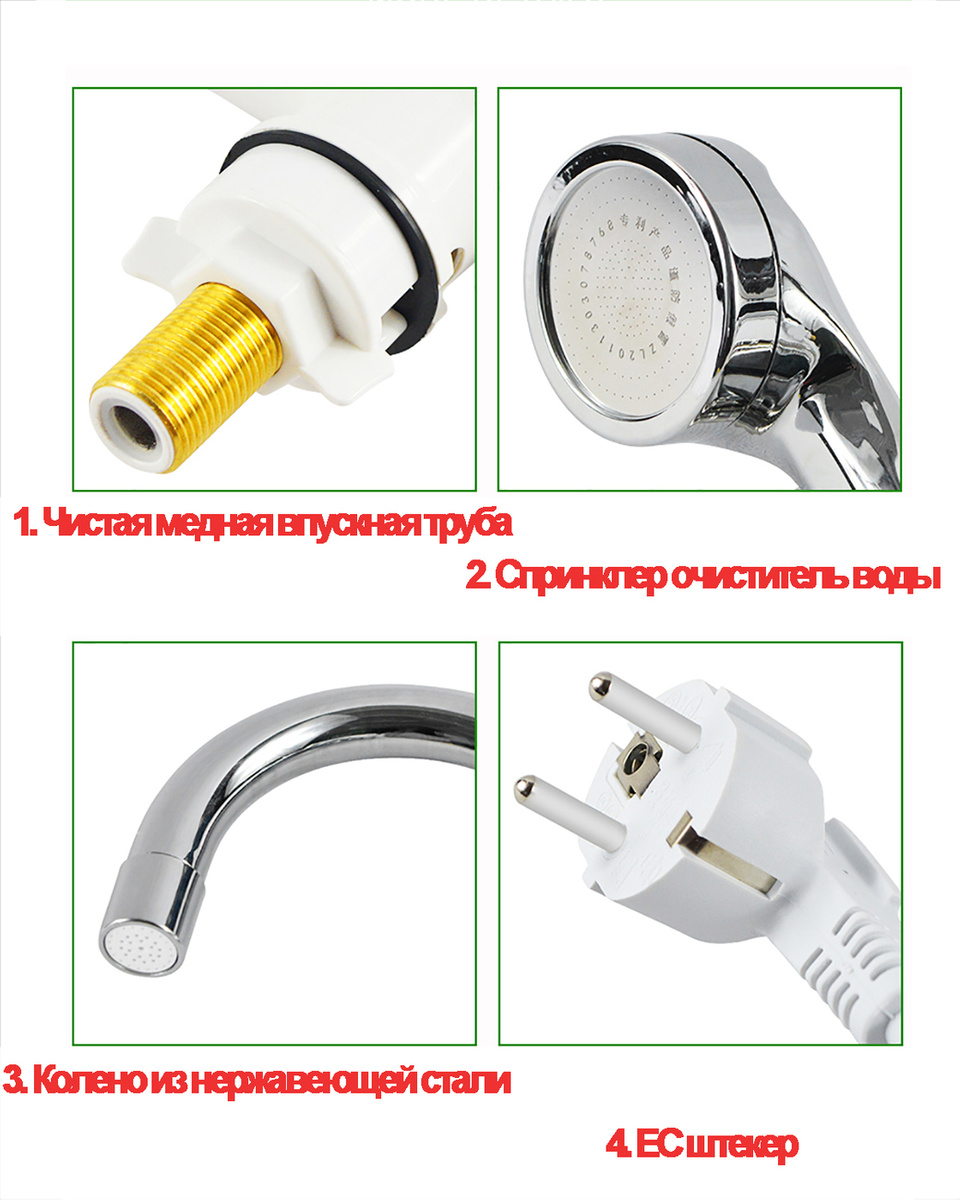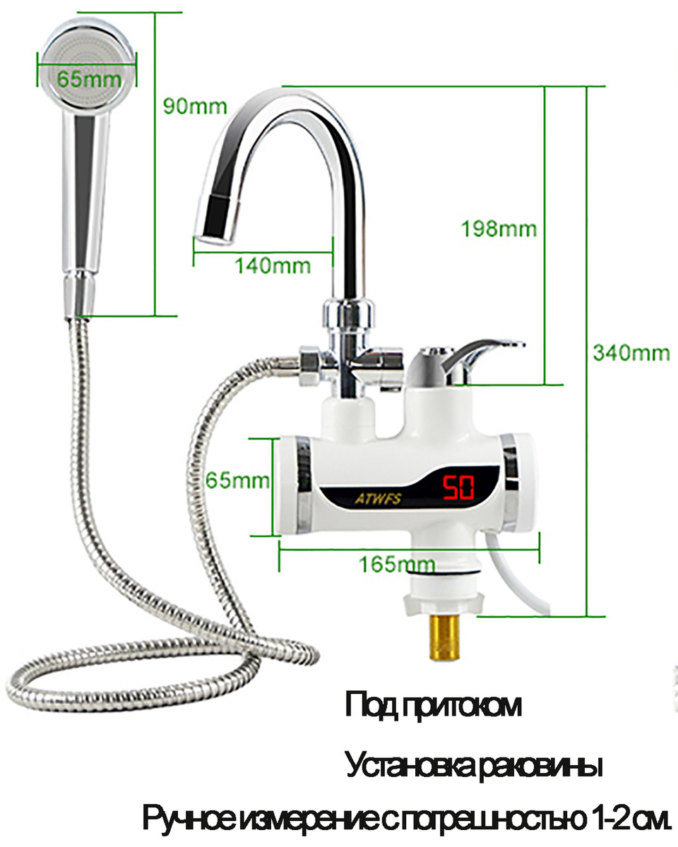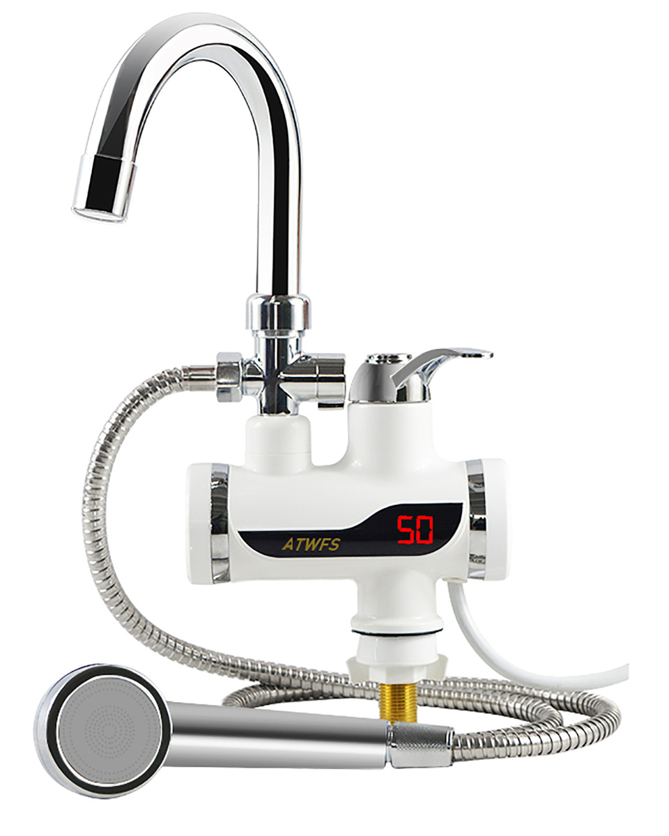 Водонагреватель проточный электрический ATWFS 220В, кран-водонагреватель с душем, температурным дисплеем и штекером