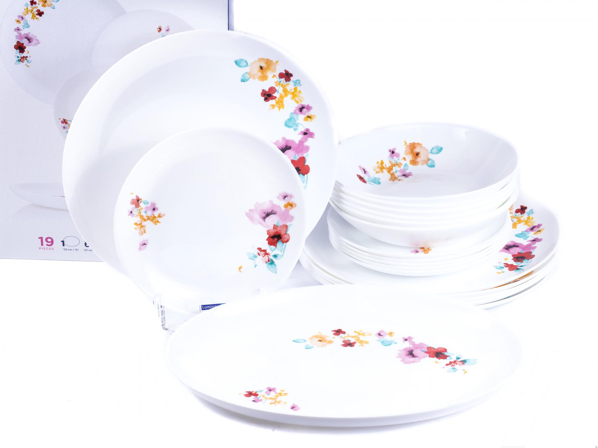 - В наборе блюдо, тарелка закусочная (десертная), тарелка столовая глубокая, тарелка столовая мелкая