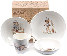 - В наборе кружка, салатник, тарелка столовая глубокая, тарелка столовая мелкая