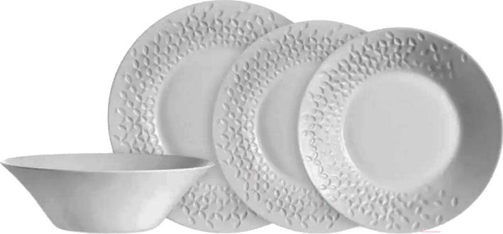 - В наборе салатник, тарелка закусочная (десертная), тарелка столовая глубокая, тарелка столовая мелкая
