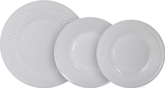 • В наборе тарелка закусочная (десертная), тарелка столовая глубокая, тарелка столовая обеденная