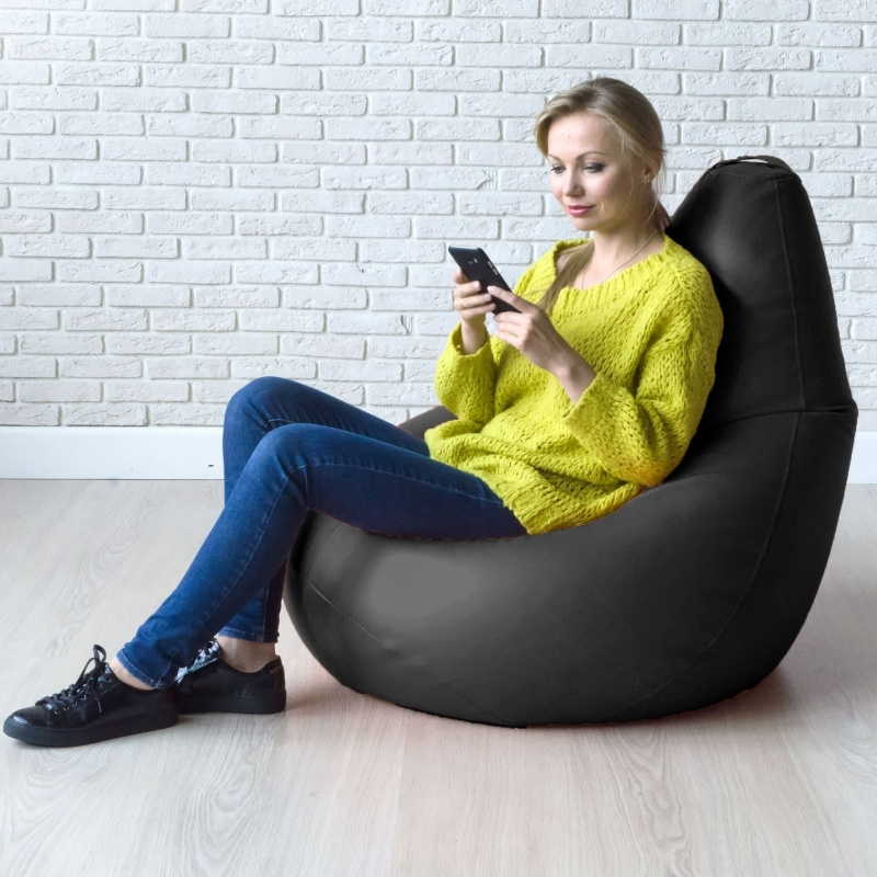 Кресло-мешок "груша" MyPuff, размер Стандарт, экокожа, черный