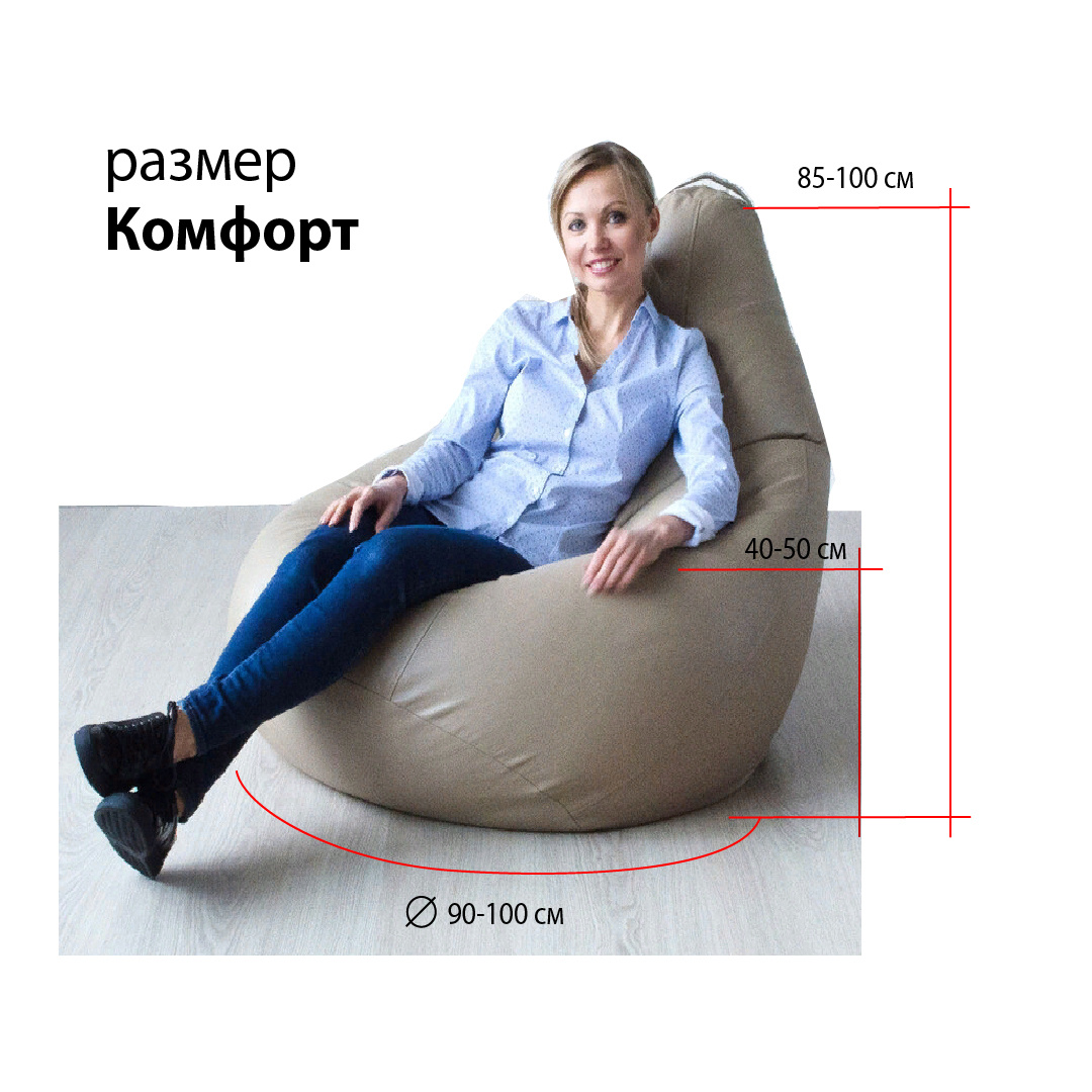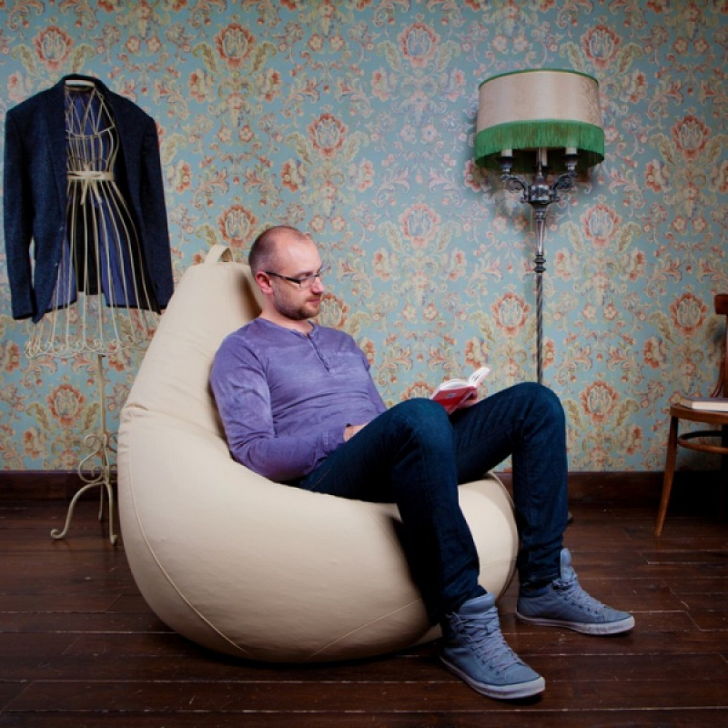 Кресло-мешок "груша" MyPuff, размер Комфорт, экокожа, молоко