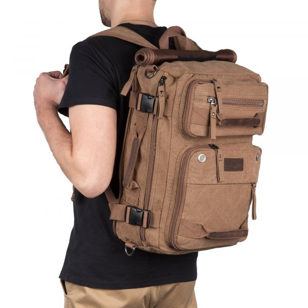 Вместительный и стильный мужской рюкзак – это универсальная модель для города и путешествий. При необходимости рюкзак легко трансформируется в очень вместительную дорожную сумку. Размеры этой модели позволяют взять его в самолет в качестве ручной клади.