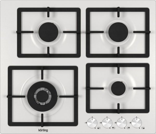 Газовая варочная панель, количество конфорок 4, wOK-конфорка, материал поверхности эмалированная сталь, управление: поворотные переключатели, особенности: газ-контроль, электроподжиг конфорок автоматический, решетки чугунные, ширина встраивания 56 см.