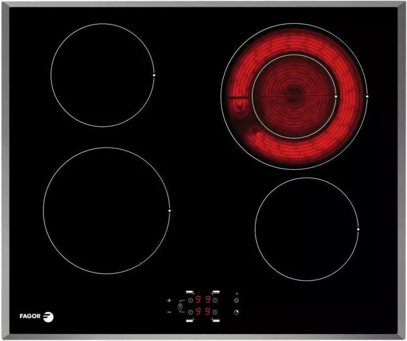 Электрическая, Hi-Light, 4, стеклокерамика, сенсорное управление, изменяемая зона нагрева, защита от детей, защитное отключение, ширина встраивания 56 см.