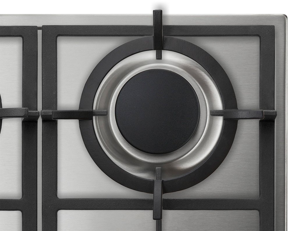 Газовая варочная панель, количество конфорок 4, материал поверхности нерж. сталь, управление поворотные переключатели, электроподжиг конфорок автоматический, решетки чугунные, газ-контроль, ширина встраивания 56 см.