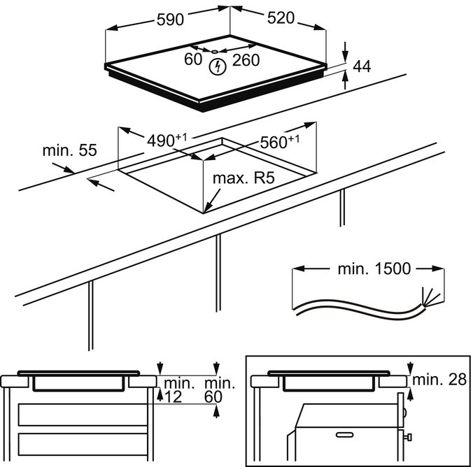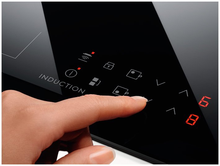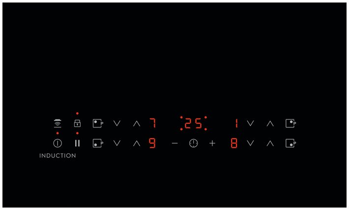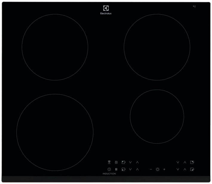Электрическая варочная панель, тип конфорок индукционные, количество конфорок 4, материал поверхности стеклокерамика, управление сенсорное, защитное отключение, индикатор остаточного тепла, защита от детей, таймер , ширина встраивания 56 см.