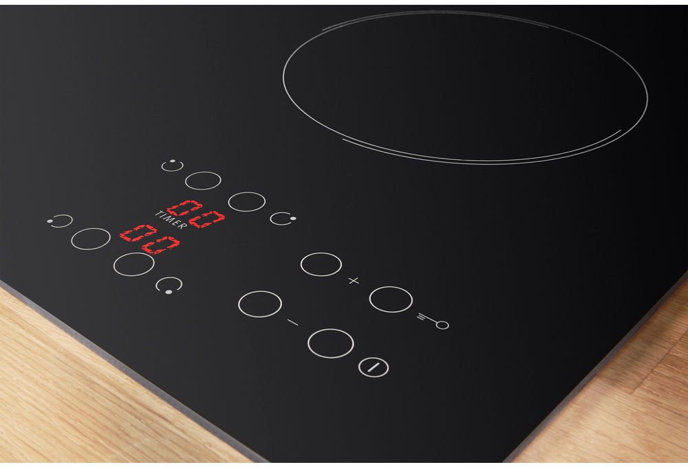 Электрическая варочная панель, тип конфорок Hi-Light, количество конфорок 4, материал поверхности стеклокерамика, управление сенсорное, изменяемая зона нагрева, защитное отключение, индикатор остаточного тепла, защита от детей, таймер , ширина встраивания 56 см.